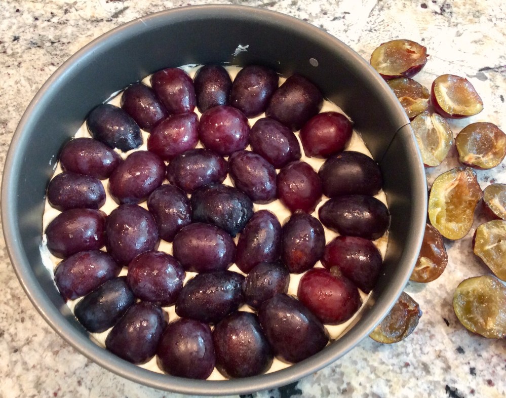 The original recipe also gives you a choice of baking in an 8″, 9″ or 10″ springform pan. I think 10″ would be too big because the resulting cake would be very flat and 8″ too small because there wouldn’t be enough of the crusty top or enough plums. 9″ is just right. The original recipe calls for unbleached AP flour but I prefer bleached for cakes. It gives a more tender crumb. Finally, the NYT recipe doesn’t call for any salt. I salt everything so I added a pinch.