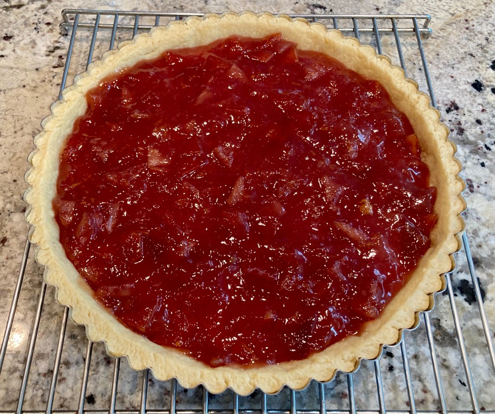 16. Bake the frozen tart shell for about 15 minutes, until the crust is partially baked but not colored. Remove from oven and completely cool.