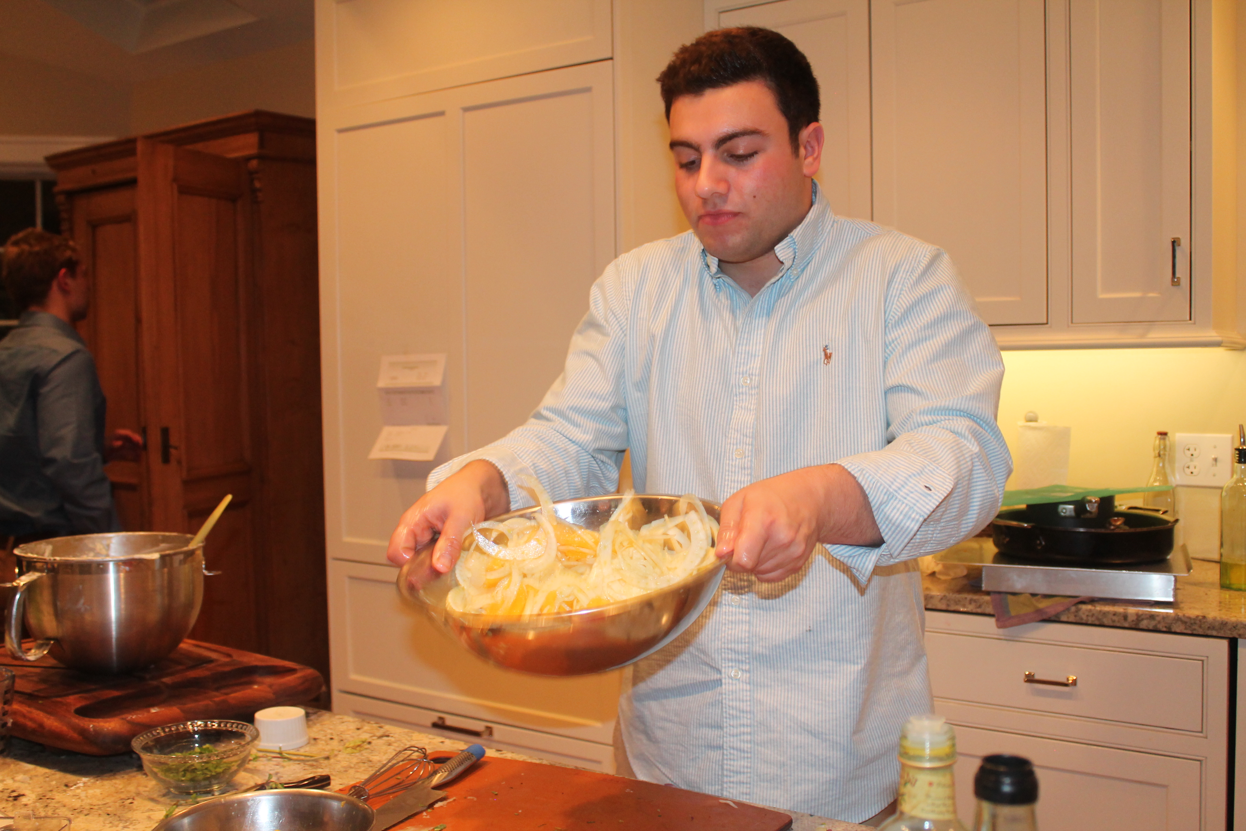 After helping my mom host hundreds of dinner parties over the past 10, I decided that since I am a man now (just turned 18!) it was time I hosted my own. The plan came together about 11:30 the day of the event. I sent a group text to a couple friends telling them dinner was at 9 and to dress classy. As I sat through my last class of the day hundreds of ideas for the menu ran through my mind. I wanted to do bread, a salad, an entree, a side and a dessert and I wanted it to be a cohesive meal. When I got home, I quickly shuffled through a few of my favorite cookbooks and finally put together a cohesive menu. The theme I settled on was Mediterranean