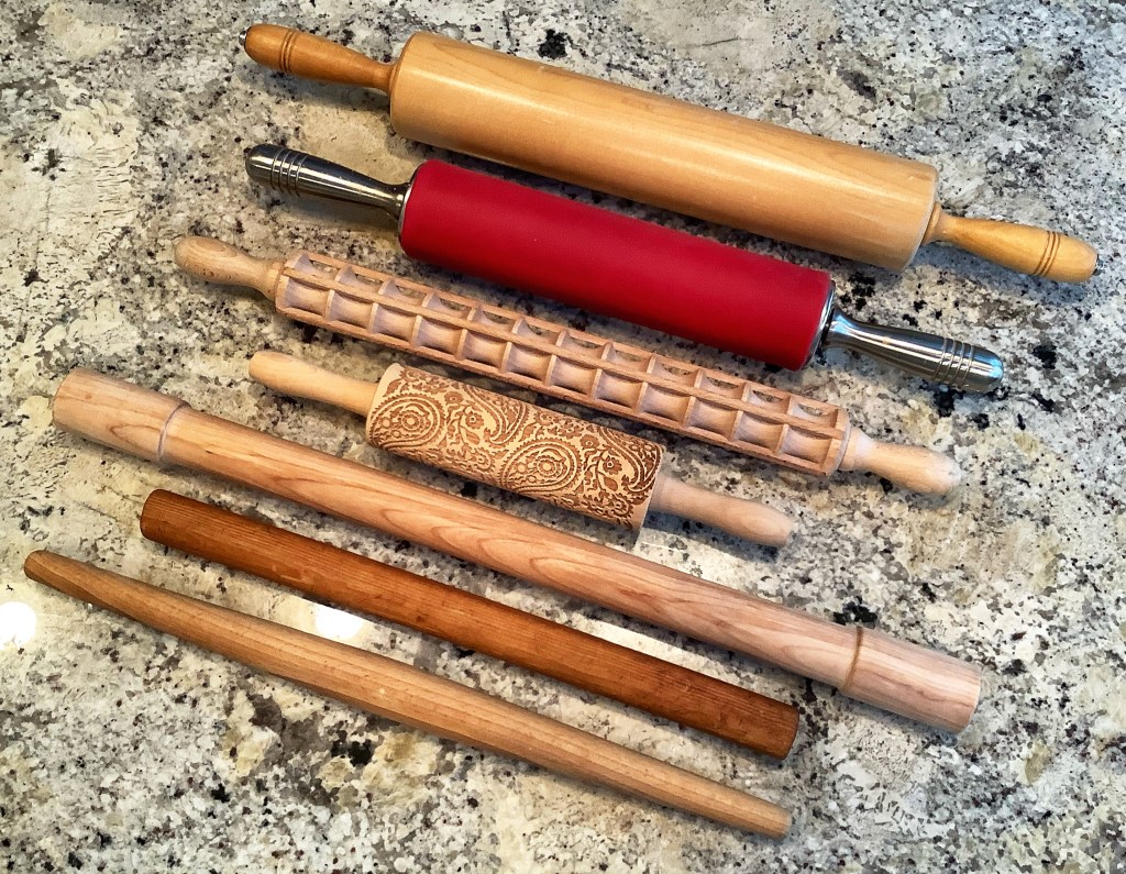 There are many kinds of rolling pins. I’m showing you the ones I own. From the bottom up: