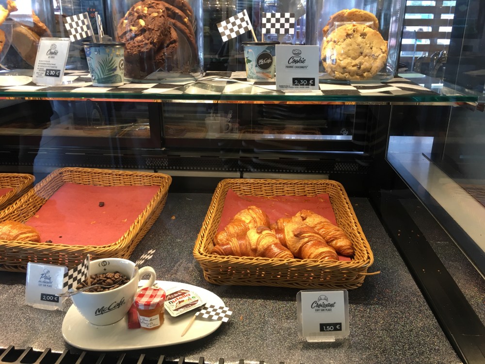 Much to Daniel’s chagrin we drove past Chartres and decided to stop briefly at a highway oasis. Michael was delighted to find a McDonald’s there. In addition to the usual stuff, they had croissant, pane au chocolate, macarons and canelle. They were gross but hey, an “A” for effort.
