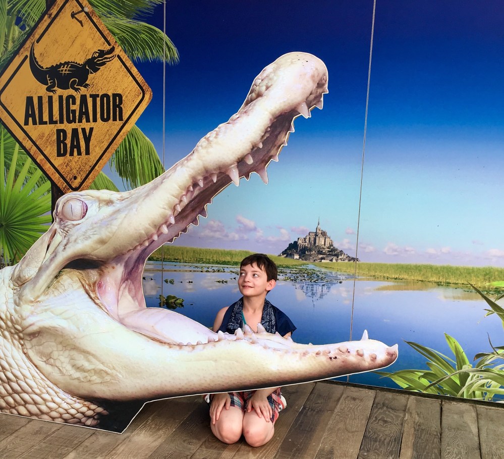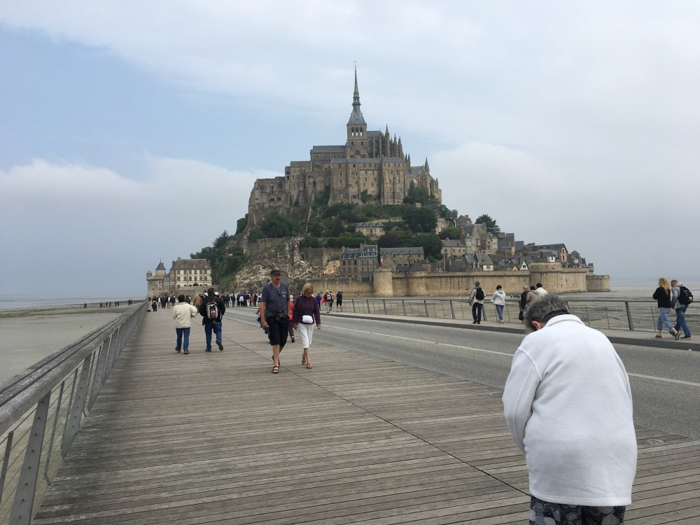 We are on our way back to Mont St. Michel. Daniel wants to do a three hour walkabout on the sands around the island. I am torn between going with him and marching around wet sand in bare feet without my Berkies or acces to a bathroom (these are the things you must think about at almost 60) or spending another day trying not to lose Michael and going to Alligator Bay with the rest of the family, or poking myself in the eye with a sharp stick.