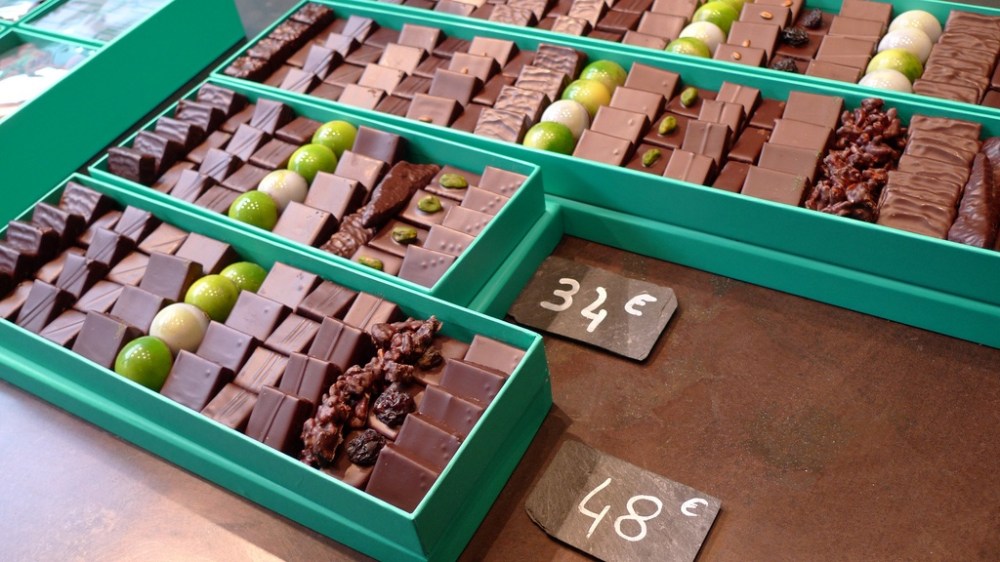 After lunch we met Francois and fished with Michael near the Pont des Arts and then walked to the pyramids at the louvre. Michael was tired and delighted to go home in a taxi with Francois. Daniel and I went back to Patrick Roger to get more chocolate and specifically to search for his elusive peach/pepper caramel bonbon. We found it but it was only sold in a large assorted box. We asked if we could add it to another box. Mai Non! We asked if we could buy them separately. Mai non! We wheedled. We dallied. We told him that we knew the chocolates were kept downstairs in a freezer in separate boxes and that he could sell us the peach caramels if he wanted to. The line behind us began to build. I think the salesperson realized that we were deaf to the word ” no” and was also a bit freaked out about our intel about where and how the chocolates were kept. Who are these chocolate sleuths? He relented and sold us four of the peach. They were lovely.