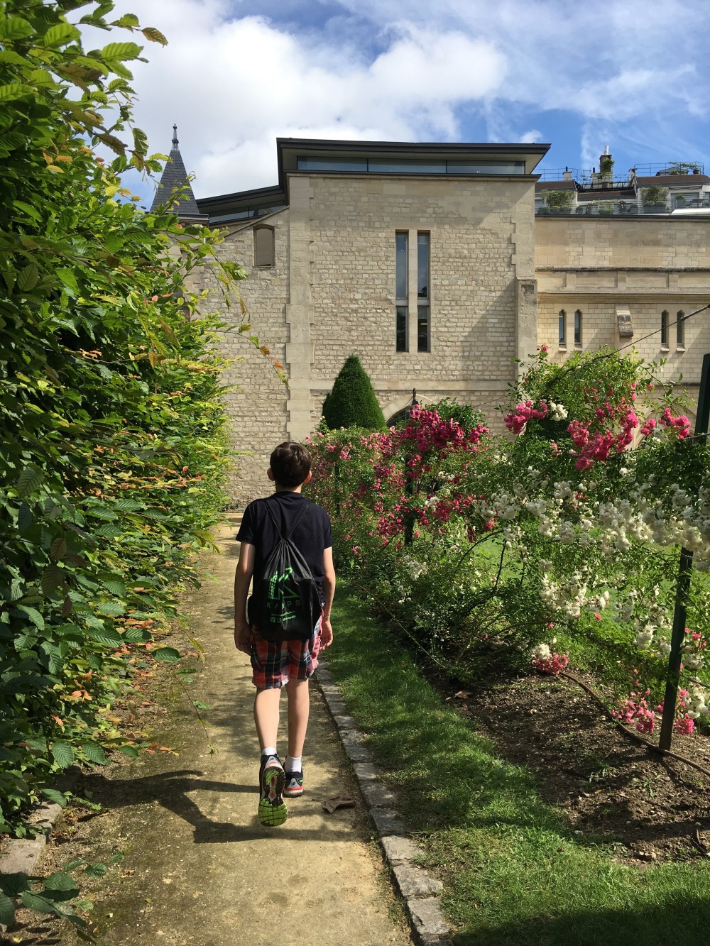 We had Tonton Laurent with us and he and Michael did some energetic sword fighting in the gardens with the tiny figures they bought in the toy shop.