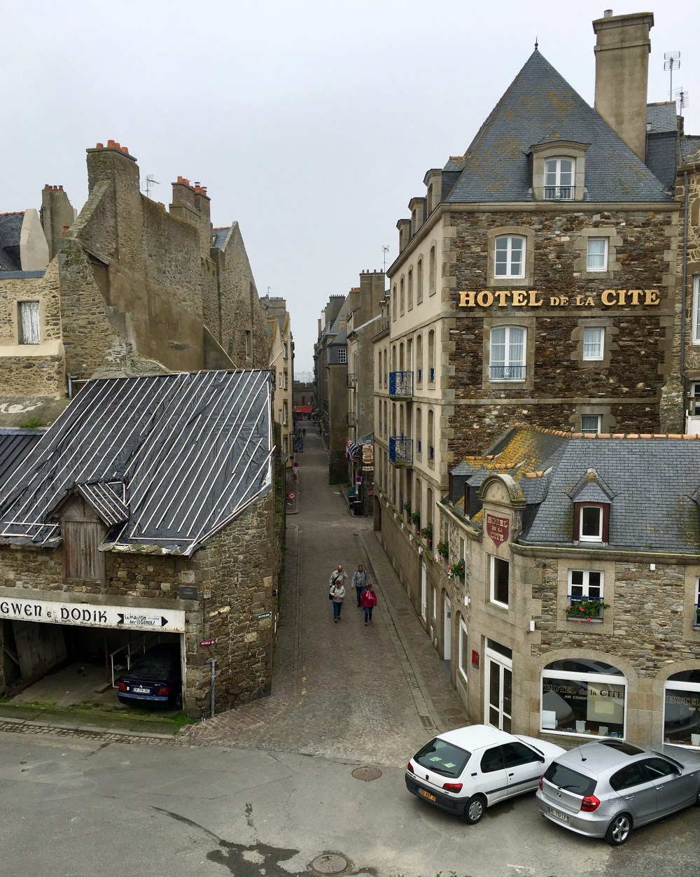 The walls of this fortified city hide many narrow streets with stone walls, a few churches, restaurants, and tourist shops selling Breton striped sweaters, snow globes and pottery. However, there are also some shops carrying designer Pret a Porter from Max Mara, Devernois, Gerard Darel and Prada. I try to pass by with a blind eye.