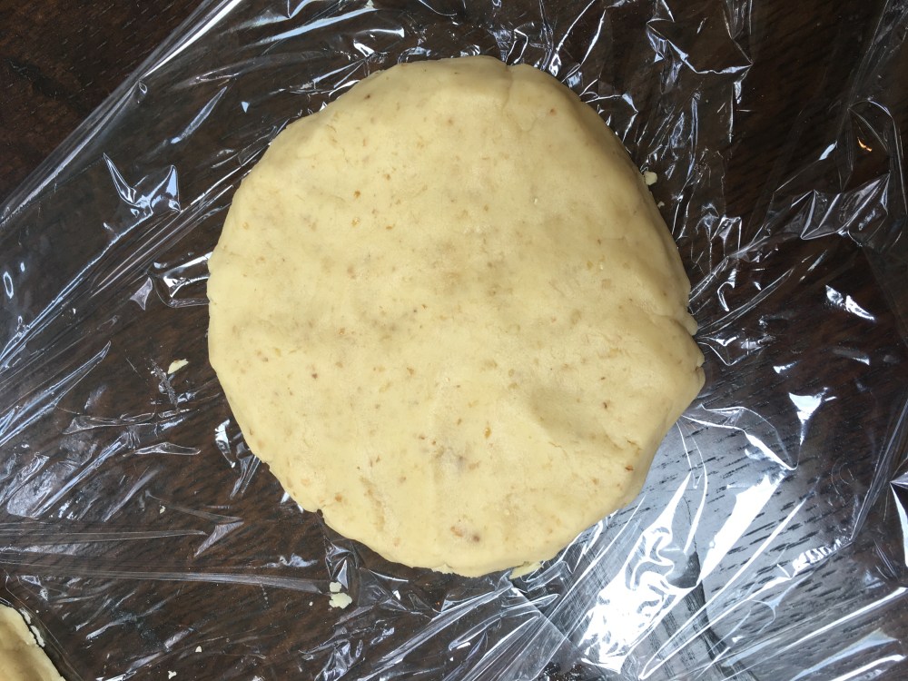 - Turn dough out onto a nonstick surface and pat dough into three 1″ thick rounds. Wrap in plastic wrap and chill for at least an hour and up 24 hours. You can freeze the rounds you are not using.